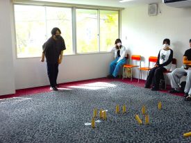 チーム戦ですので勝敗が決まります。「勝つためには声掛けが大事だよ!」と先生からの声を受けて、生徒たちは仲間同士でしっかりとコンタクトを取り真剣に臨んでいました(*^-^*)