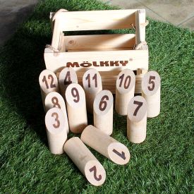 モルックのルールは簡単に言うと、木の棒を投げて数字の書かれた棒を倒し点数を競うというような感じです(^^)/
